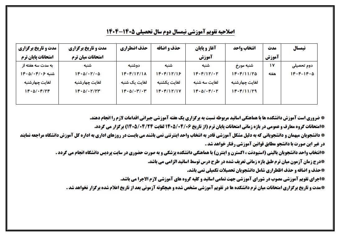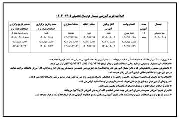 اصلاحیه تقویم آموزشی نیمسال دوم سال تحصیلی 405-404